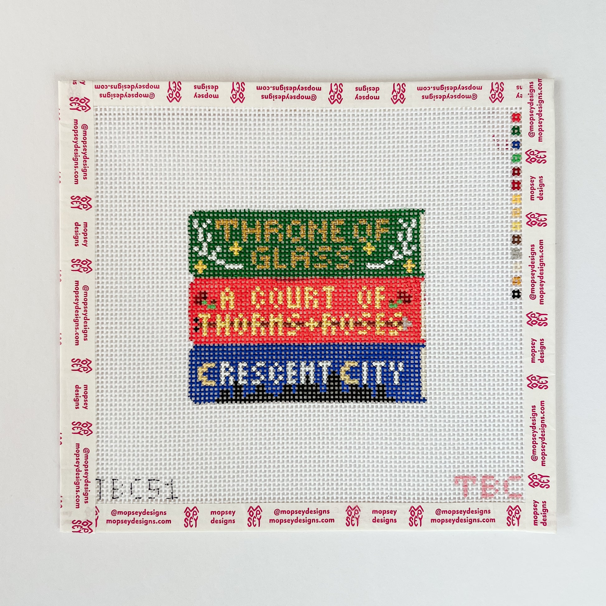 This canvas is hand and stitch painted on Zweigart Mono Deluxe White 100% cotton.