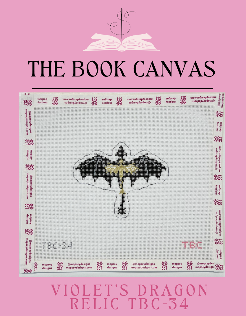 This listing is for a digital download for one needlepoint chart of the "Violet's Dragon Relic" design by The Book Canvas.