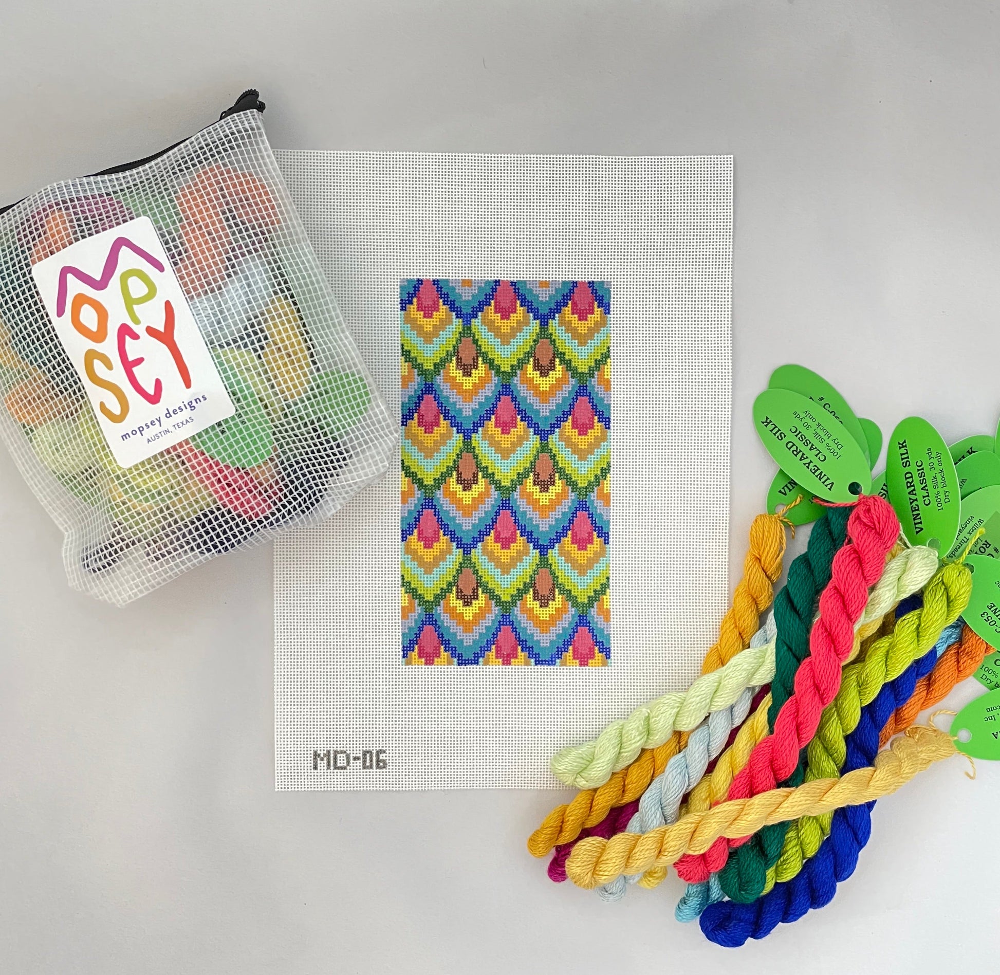 The Vagello canvas now comes in three color options! Below are fiber recommendations for all three canvases! The original Vagello uses Vineyard Silk fiber for the recommendation - this is 100% silk, comes in 30 yard skein and is best for 18 mesh. The Blue and Pink Vagello canvases use Impressions for the recommendation - this is a 50% silk and 50% wool blend, comes in 30 yard skeins and is best for 18 mesh. As always, these are recommendations and not requirements. You're encouraged to use what is in your stash or use your favorite fibers! Please use this list as a guide to pick what fibers are best for you. Fiber colors never need to match a canvas exactly, you're encouraged to make the canvas your own!